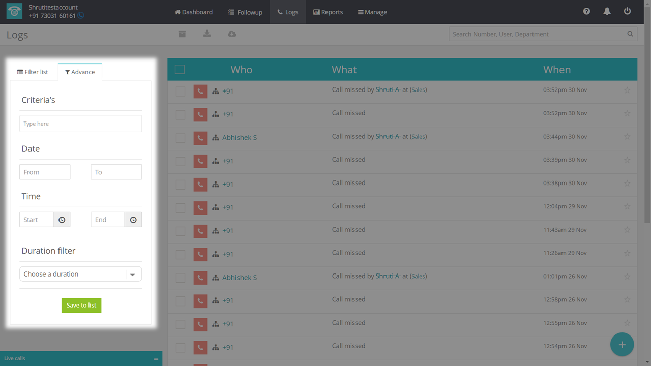 Why use filters? Filters let you instantly isolate Missed, Connected, or SMS entries so you don’t wade through thousands of calls. Before you start Requirement Why it matters Admin or owner role Only these roles can see full logs. Desktop browser ...