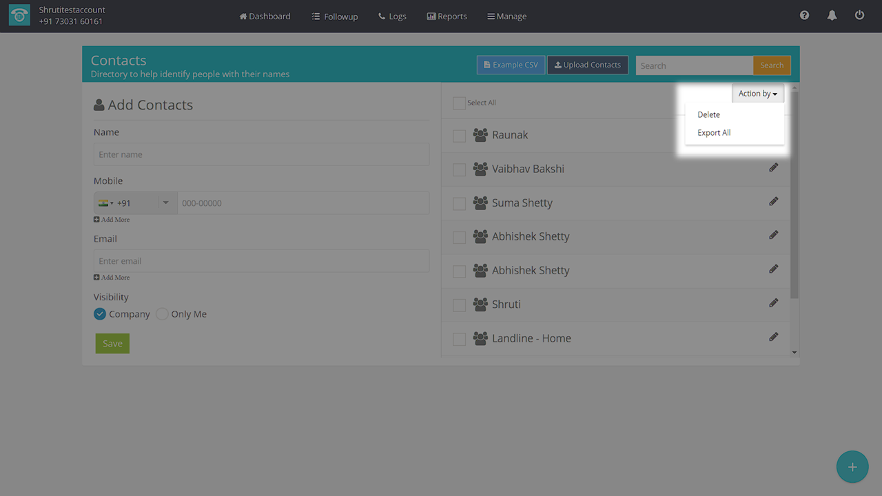 3. Select the contacts you want to download or “Select All". Click on “Action by” at the top right.