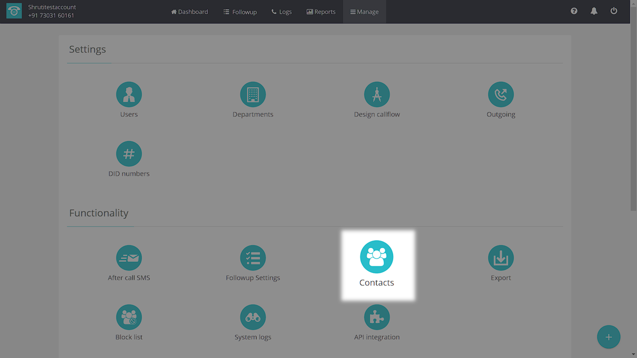 Login to your MyOperator panel and click on “Manage” at the top.