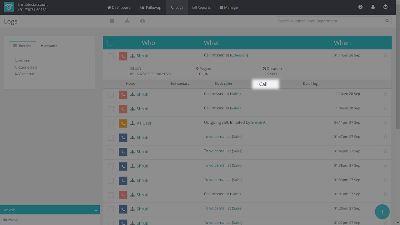 MyOperator offers you default filters as follows: Connected: Incoming and Outgoing calls that you receive or make on your business phone. Missed: Calls that you or your team failed to answer. SMS: Text messages sent or received on your MyOperator ...