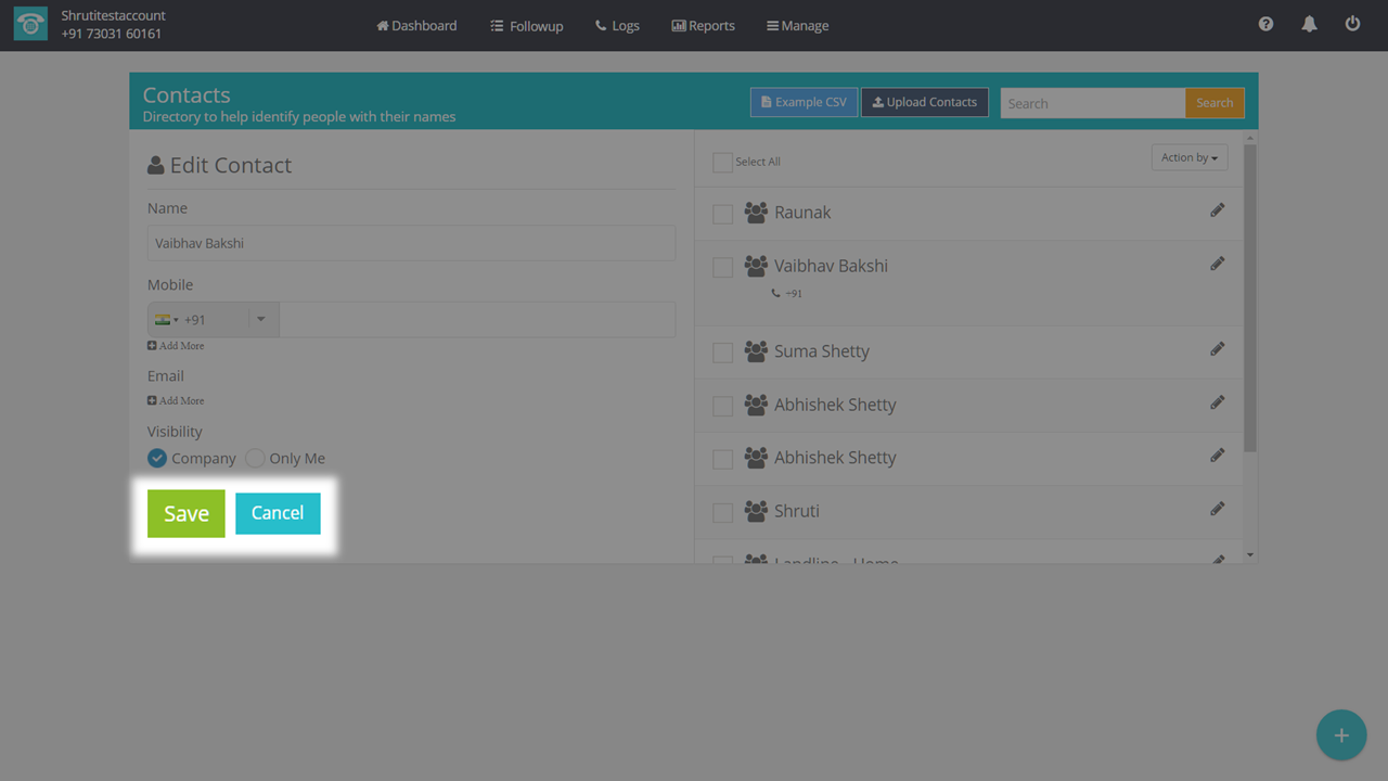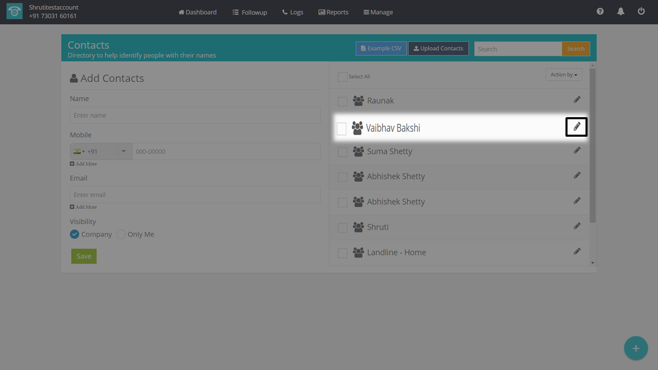 Yes. You can update contact details anytime through your MyOperator dashboard. Steps to update a contact: Log in to your MyOperator panel. In the left navigation menu, click Contacts. Select Manage Contacts. Use the search bar to find the contact you ...