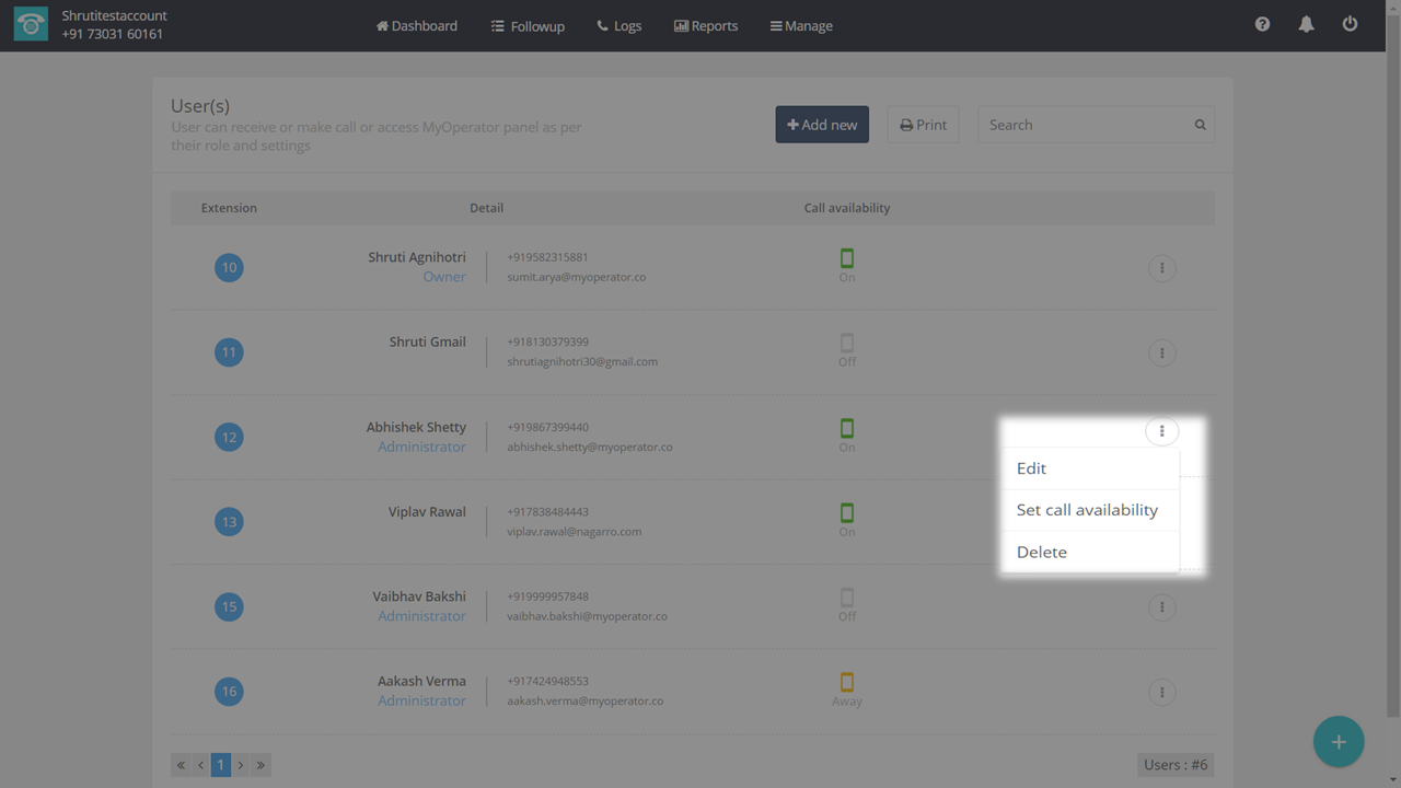 To update the information of the users: Click on ‘Users’ in the ‘ Manage Section’. Your ‘User List’ will be visible. Click on the 3 dots which are available on the right-hand side of each user. Select the edit option and you can edit the user's ...