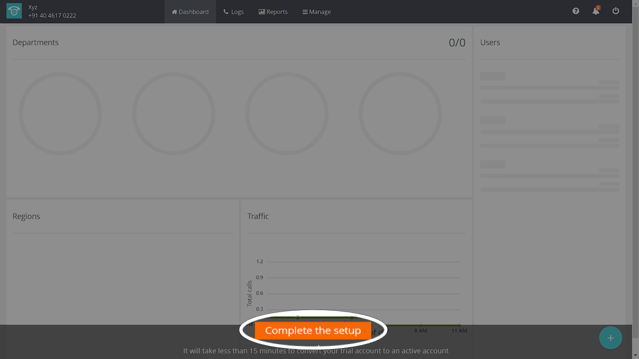 Complete the setup” button at the bottom of the Dashboard page to upgrade your Demo account.