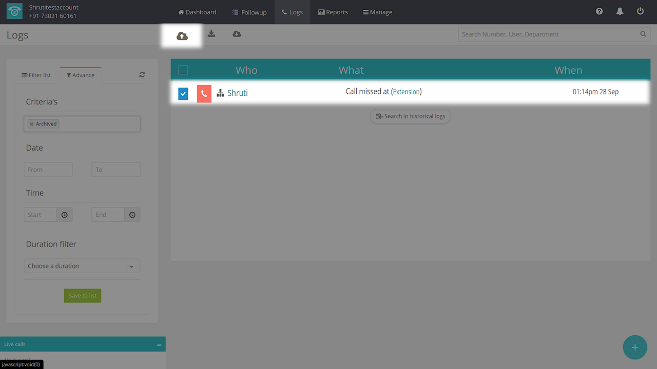 MyOperator gives you the opportunity to archive or unarchive call logs that are tracked. To: