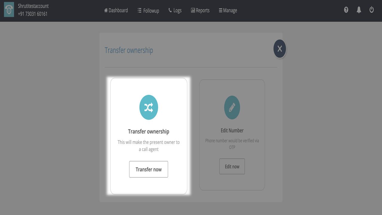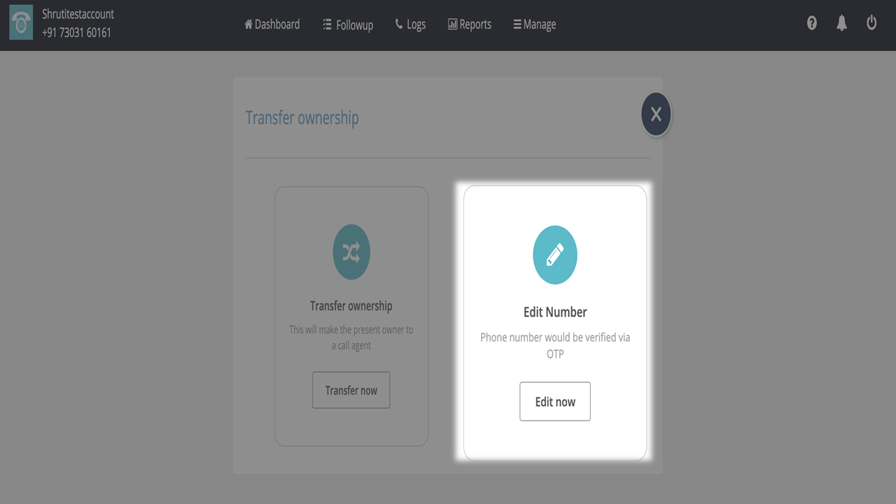4. There are 2 options. One is for transfer ownership and the other option is to edit the Owner’s phone number (The owner’s number cannot be changed from the edit option).