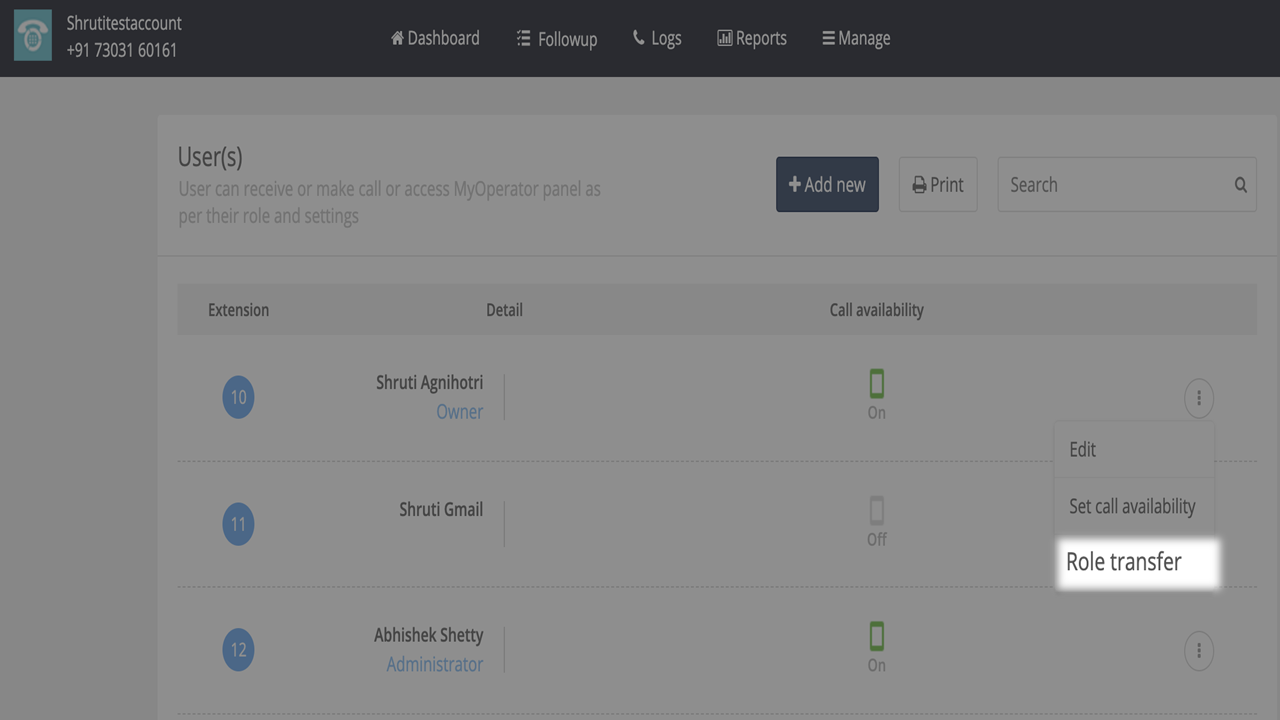 ⚡Quick answer - Only the current Owner can make these changes. Go to Manage → Users and click Transfer Role. Choose: • Transfer Owner to hand ownership to an existing user, or • Edit Number to update the Owner’s registered mobile (OTP required). ...