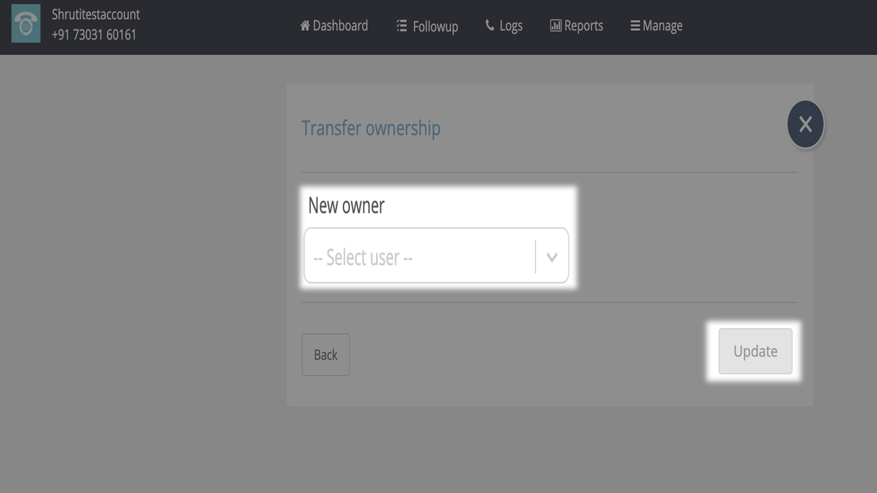 6. Transfer owner Option: Choose any of the Users and click on "Update".