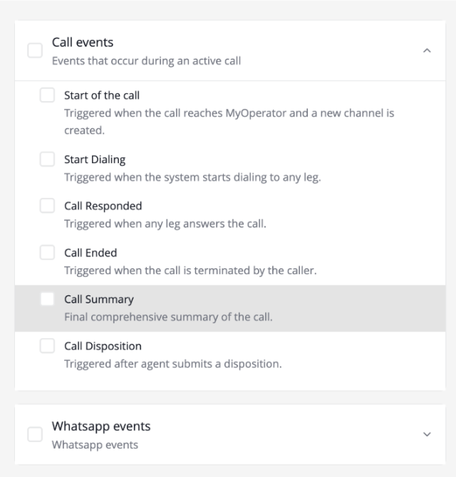 - Collapse/expand “Call events” or “WhatsApp events”.