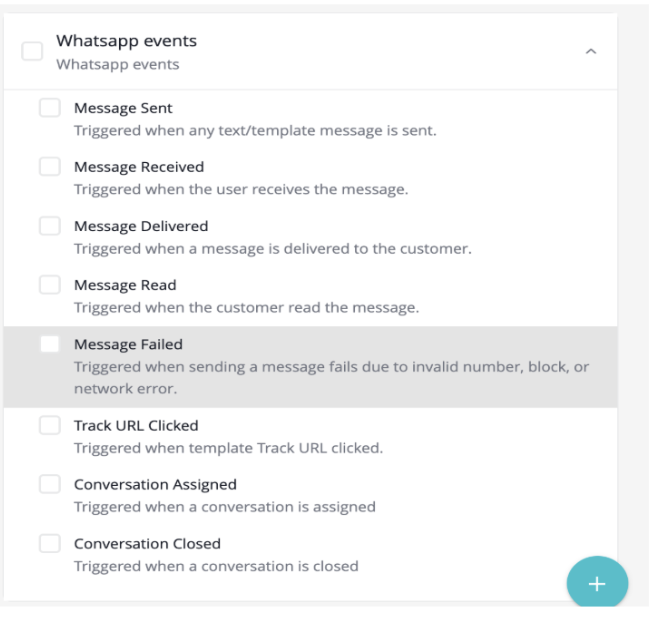 Message Received | The customer sends a message to your WhatsApp number. event_type: message.received |