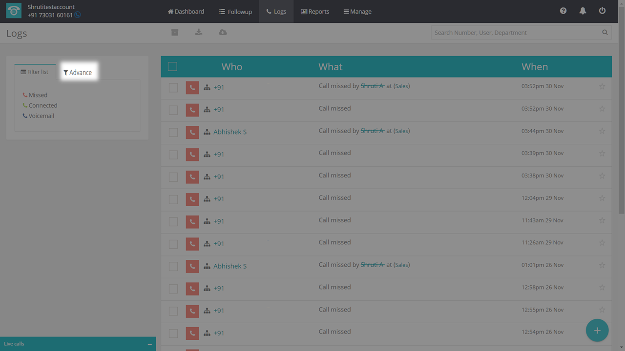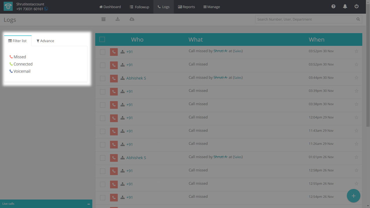 The filters you create are known as “Advanced Filters”. Advanced filters help you to filter out your required log data from the overall data. For example, if you want to find out the number of connected calls via the IVR on a particular date and ...
