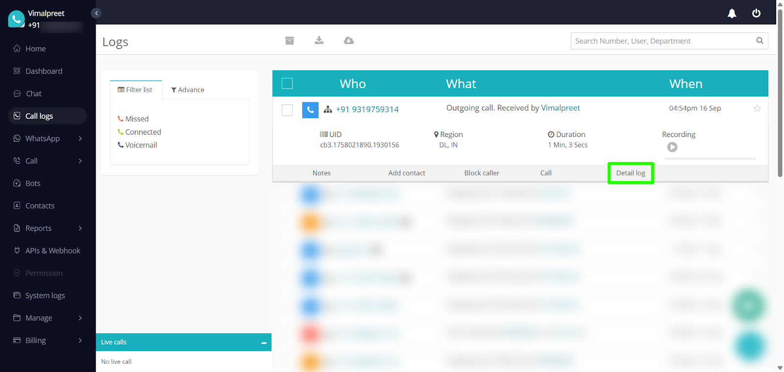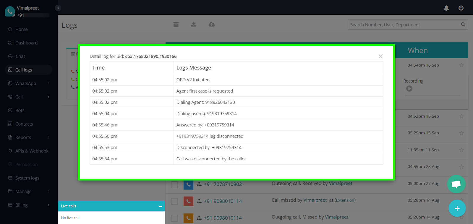 If Unclear: Share the Call UID and the detail log screenshot with your Account Manager or support@myoperator.co for technical review.
