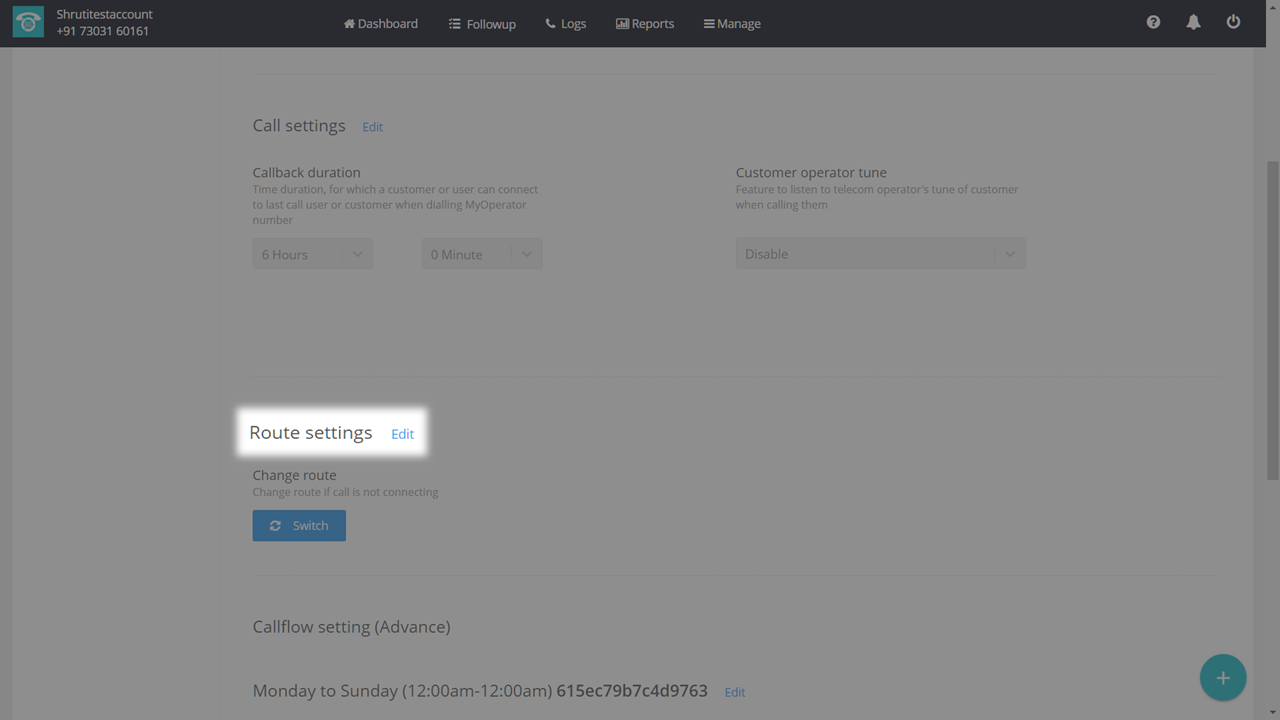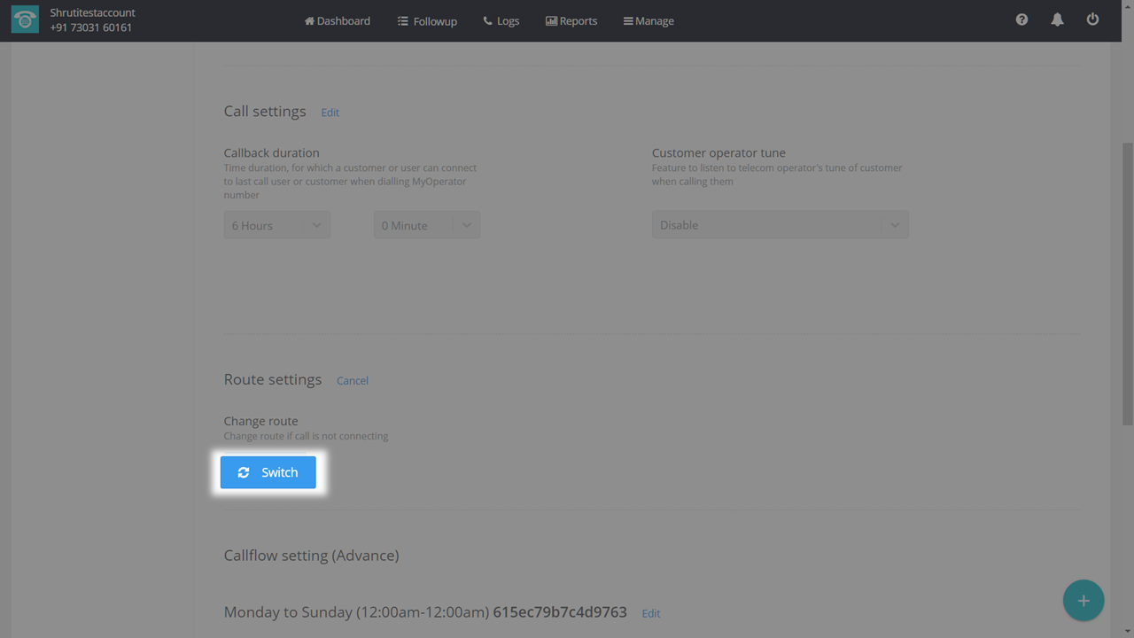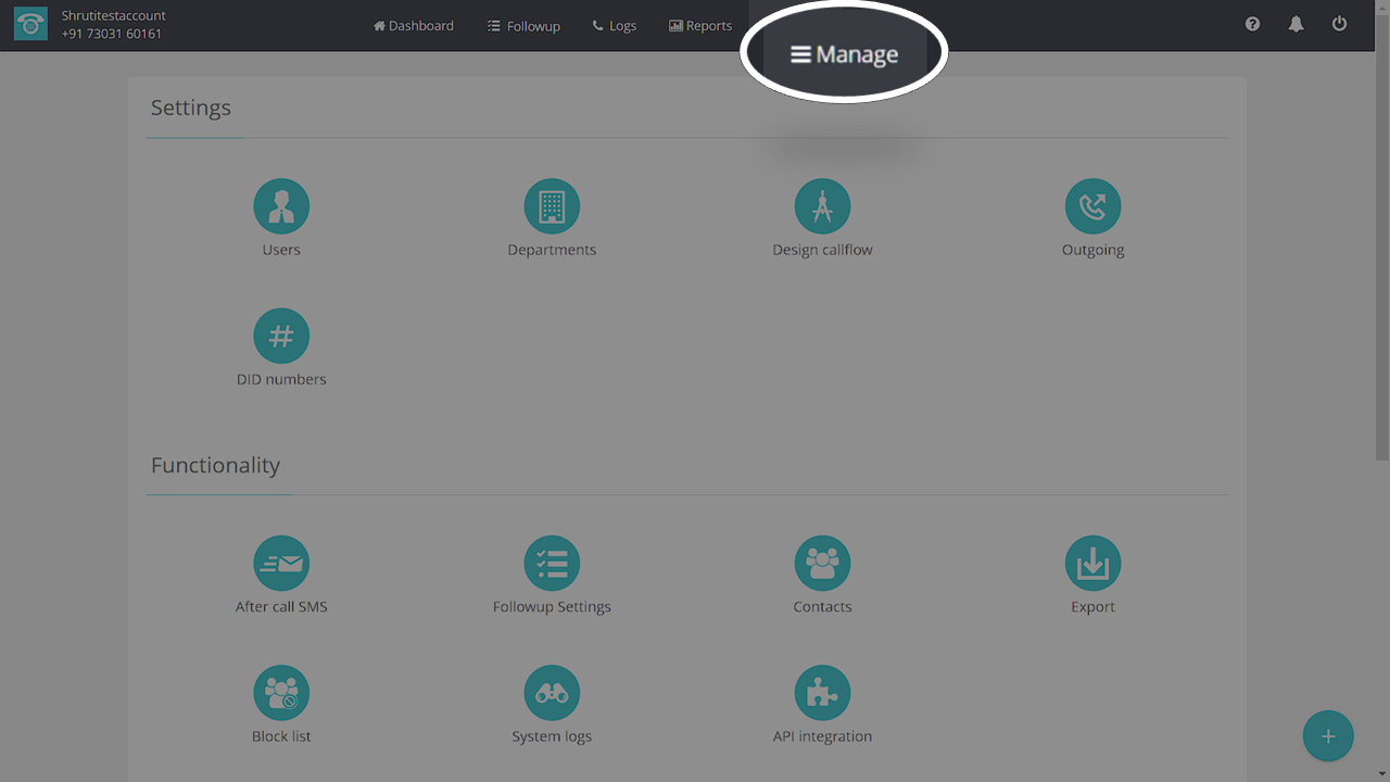 1. Go to the "Manage" section in the MyOperator panel from your super admin account.